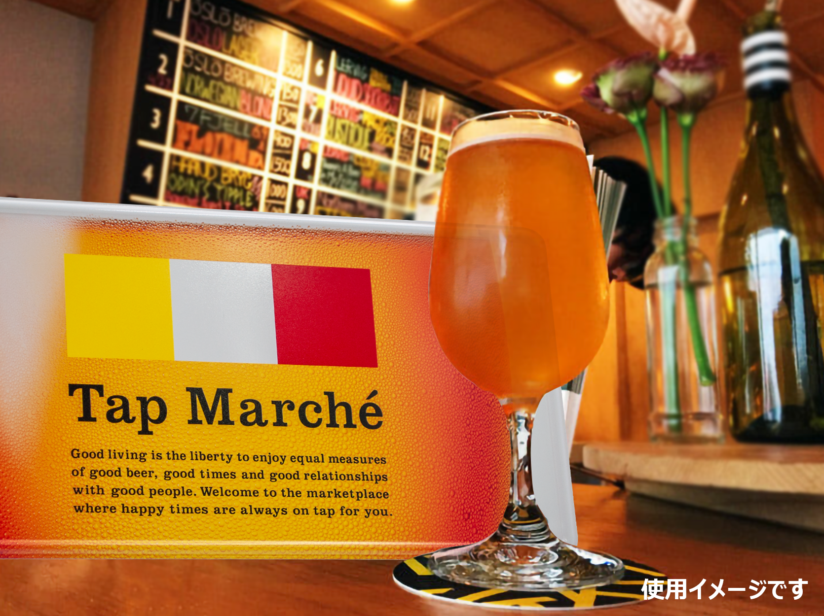 サインやインテリア、ディスプレイに利用できるタップ・マルシェのロゴが入ったプレートです