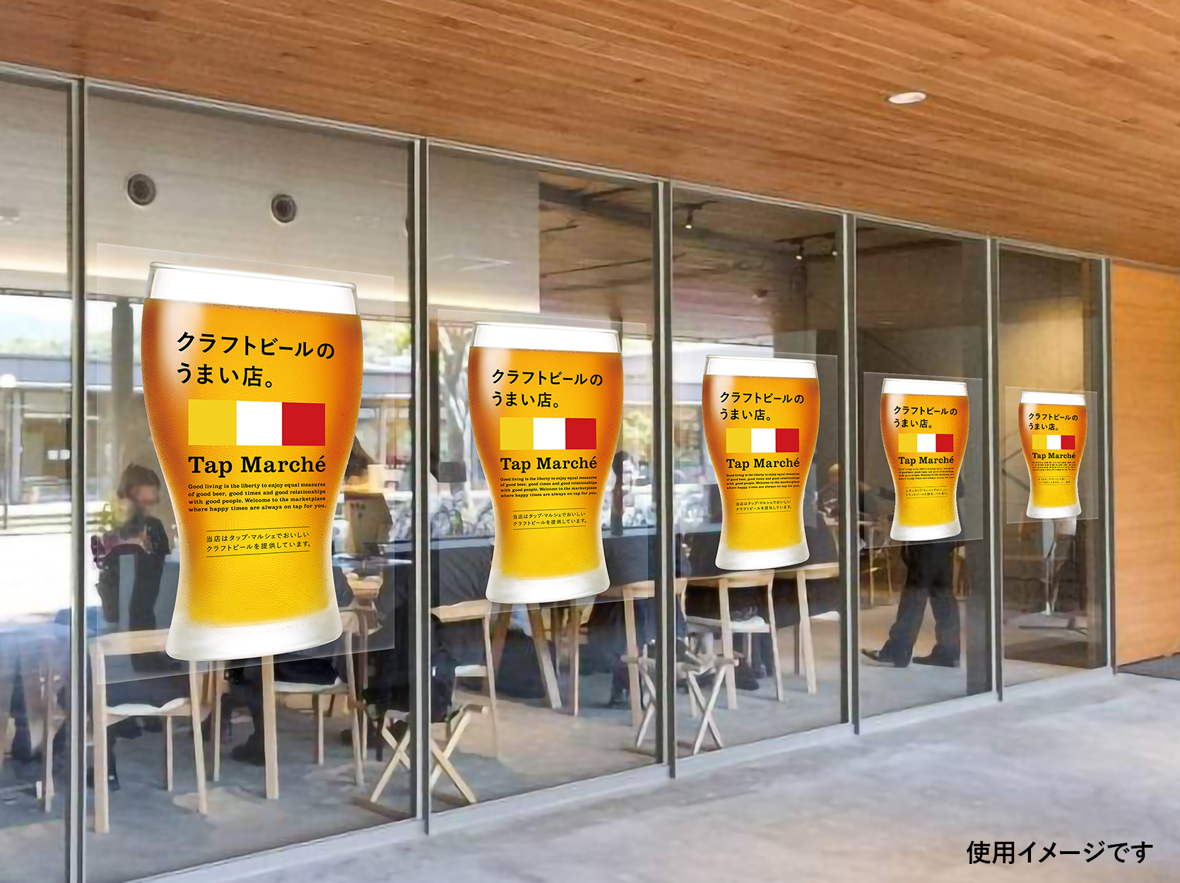 オリジナルフィルムシートは、タップマルシェのメニューを訴求でき、お店の雰囲気を積極的にアピールできます。