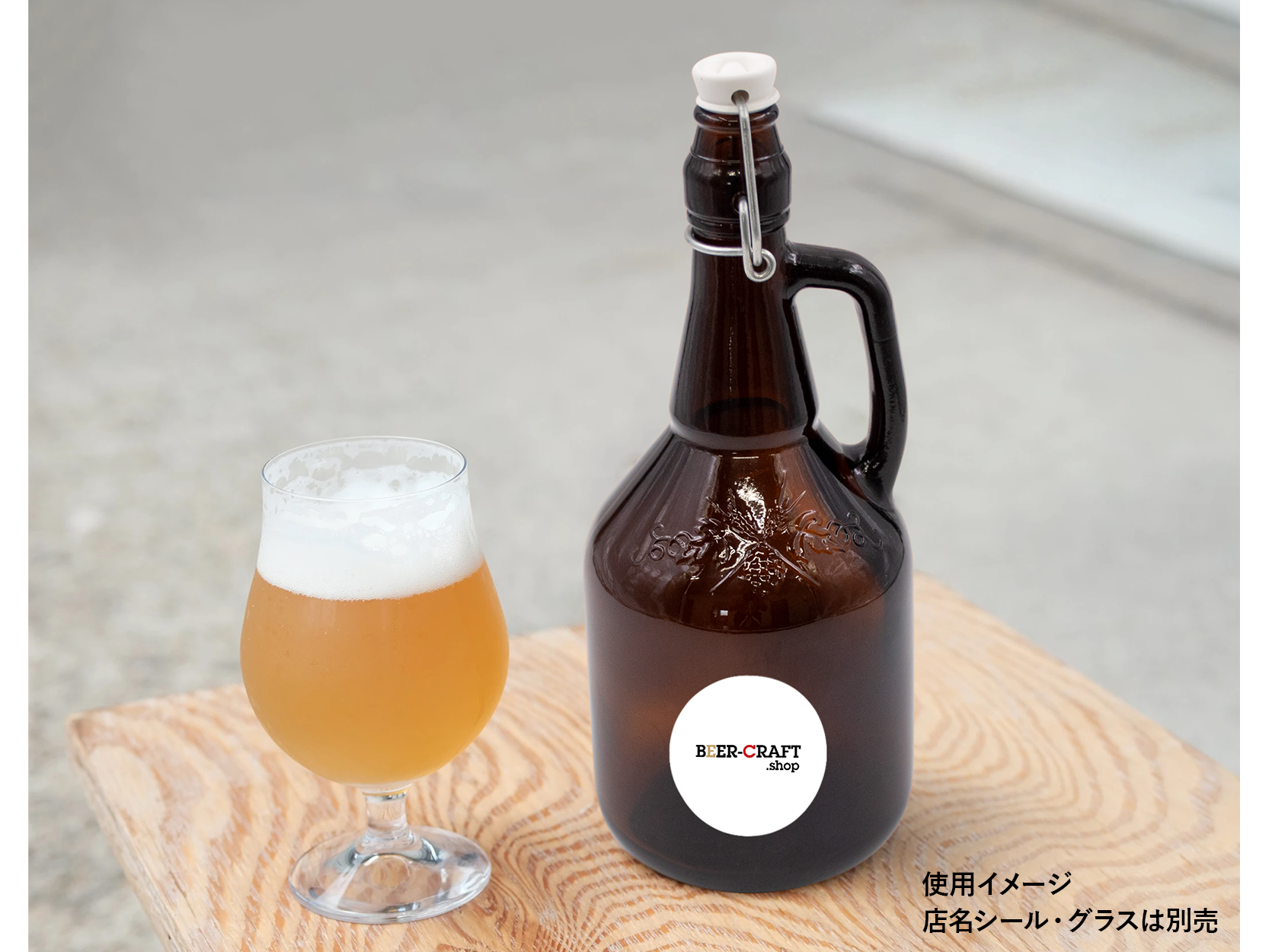 レトロでおしゃれな取っ手つきガラスびんでクラフトビールの量り売り、テイクアウトに最適なアイテムです。?